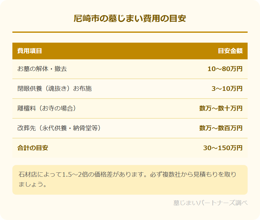 2026年時点では、尼崎市に墓じまい専用の補助金制度はありません。費用を抑えるには、石材店の相見積もりや、費用を抑えやすい供養先の選択が有効です。最新情報は尼崎市公式サイトでご確認ください。