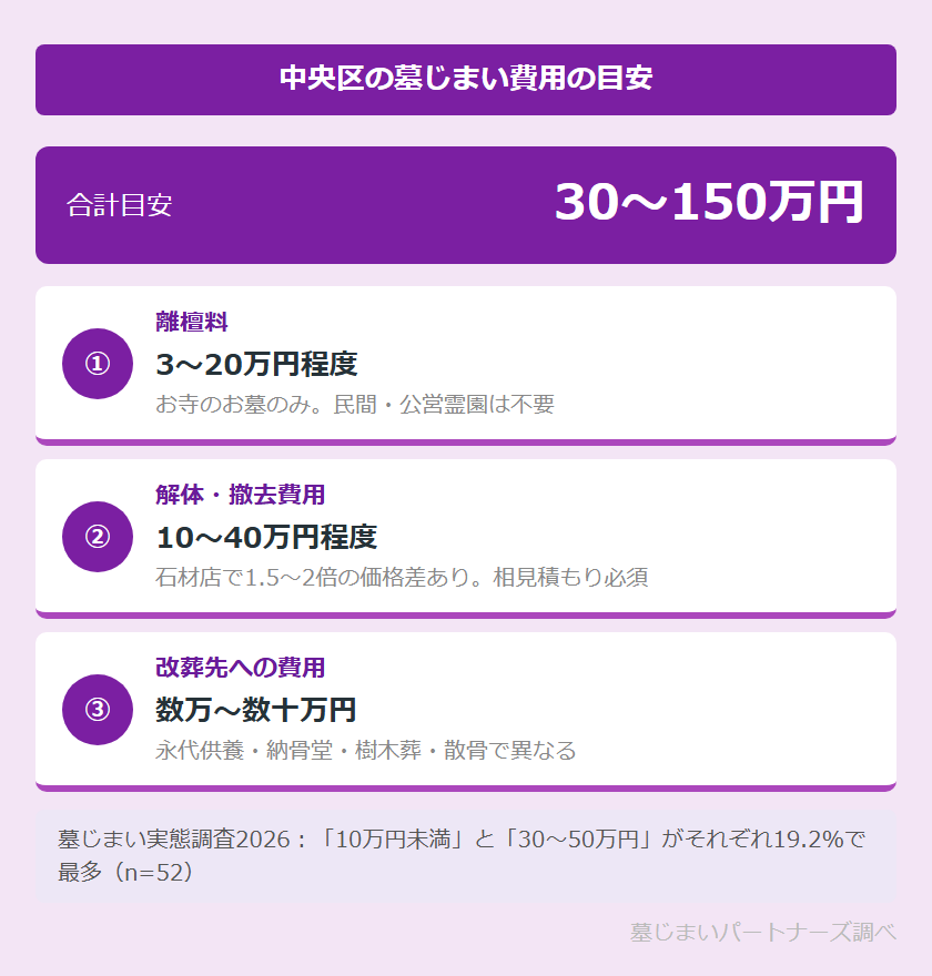 中央区での墓じまい費用はいくらかかりますか?