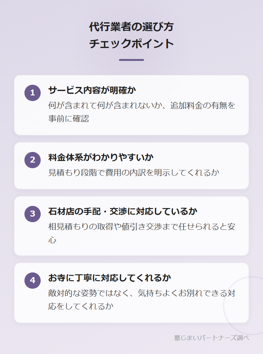 墓じまい代行業者の選び方