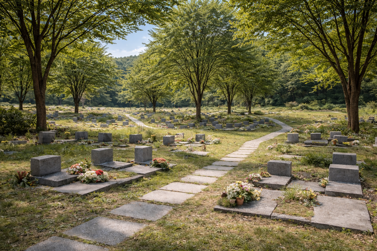 公園型(ガーデン型):都市近郊の霊園に花木を植えた区画を設け、その根元に埋葬するタイプ。アクセスしやすい立地が多く、現在最も普及している形式です。
