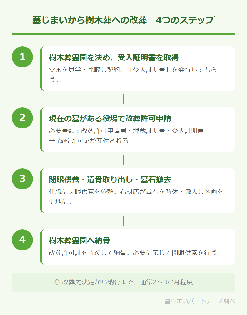 墓じまいから樹木葬への改葬手続きの流れ