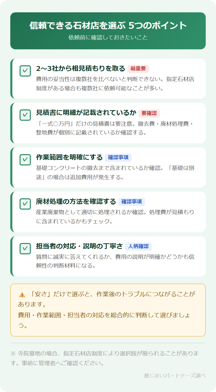 - 失敗しない石材店の選び方と注意点