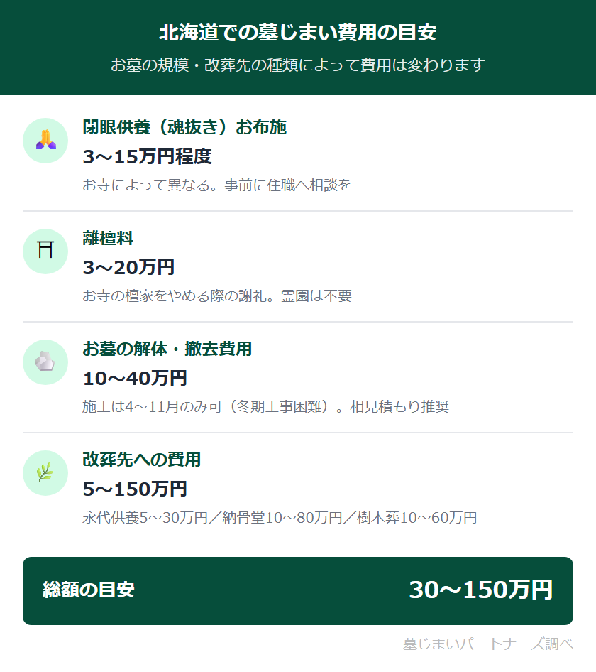 - 北海道での墓じまい費用の目安