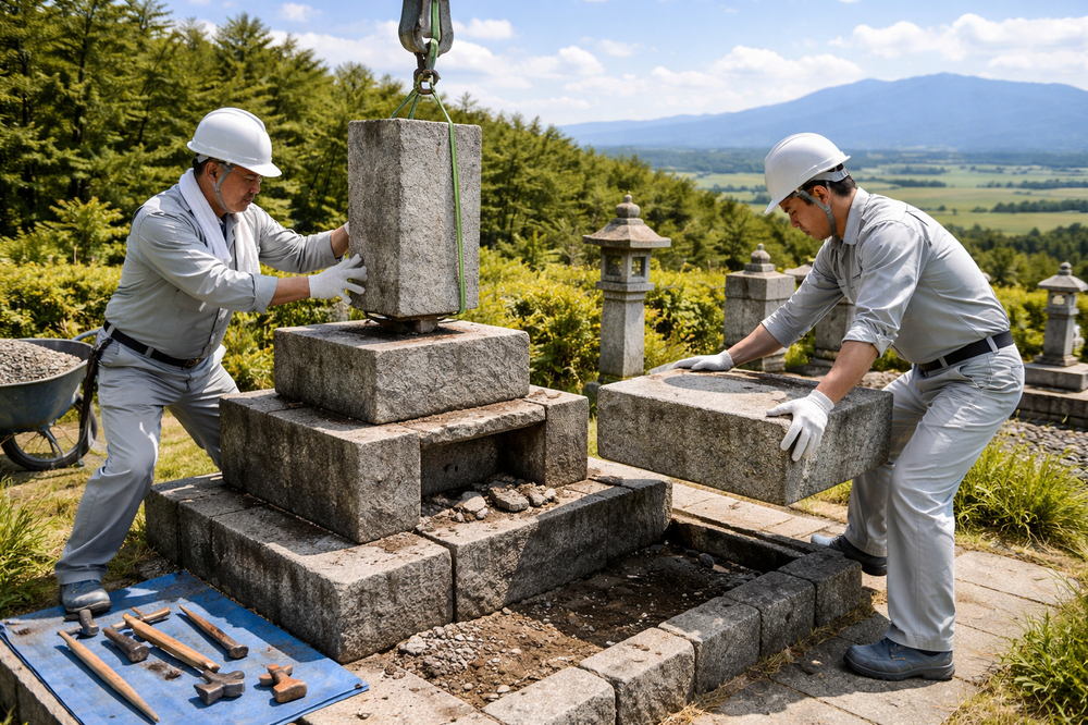 北海道の場合、地方部では近くに石材店がない場合もあり、遠方からの出張工事になると費用が上乗せされることがあります。また、冬期間(12〜3月頃)は積雪や凍結で工事が困難なため、工事を依頼する時期は春〜秋がほとんどです。早めに石材店に連絡して、施工可能時期の見積もりを取りましょう。