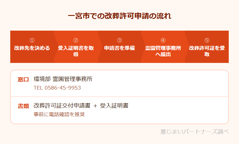 改葬先が決まったら、一宮市の窓口に改葬許可申請を行います。担当窓口や必要書類の詳細は次の章で解説します。