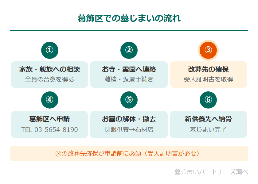 詳細・申請書は葛飾区公式サイト(改葬許可申請)からご確認ください。
