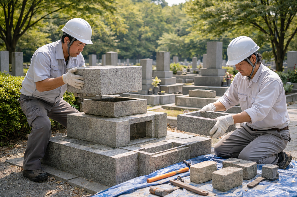 改葬許可証が交付されたら、石材店にお墓の解体・撤去を依頼します。その前に、お寺で閉眼供養(魂抜き)を行うのが一般的です。石材店によって費用に差があるため、複数社から相見積もりを取ることをおすすめします。