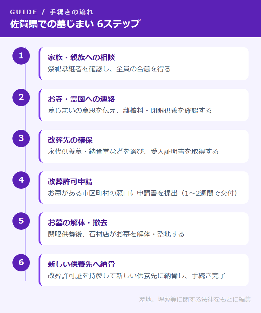 佐賀県での墓じまいを進める際は、次のポイントを押さえておきましょう。