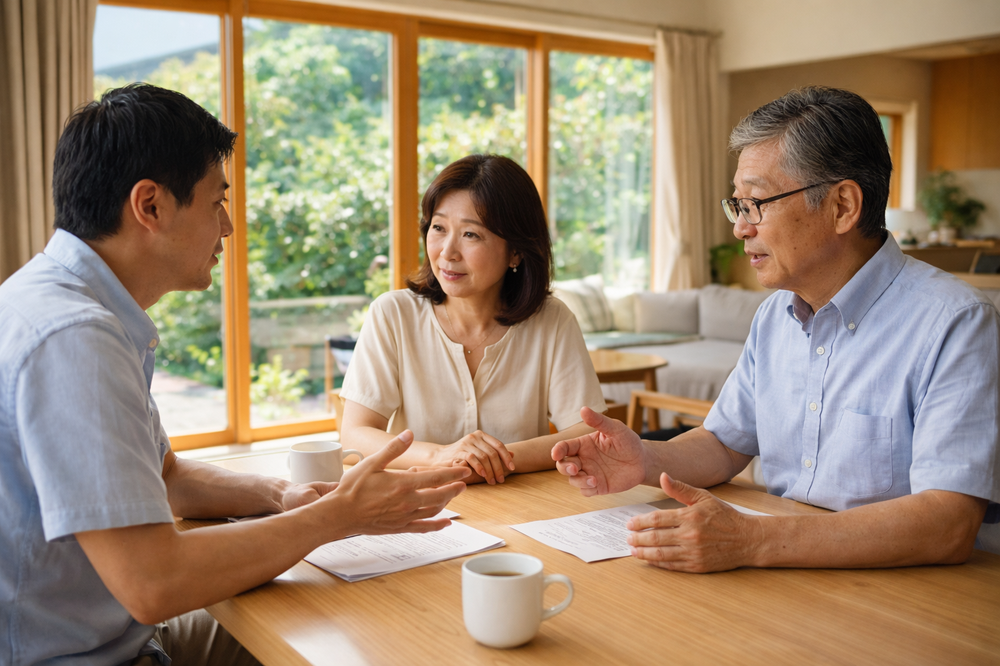 墓じまいは、お墓に関わるすべての親族の合意を取ってから進めることが大切です。和歌山県では核家族化率59.3%(全国54.1%)と高く、子世代が大阪・神戸・東京などに分散しているケースが多いため、メールや電話で事前に情報を共有し、家族が集まるタイミングで話し合うことをおすすめします。改葬先の候補パンフレットや費用の概算を事前に準備することで、反対意見が出にくくなります。南部地域のお墓では「先祖の地から離れることへの抵抗感」が強い場合もありますが、「誰も管理できなくなる前に、きちんとした供養先に移す」という観点を丁寧に説明することが重要です。