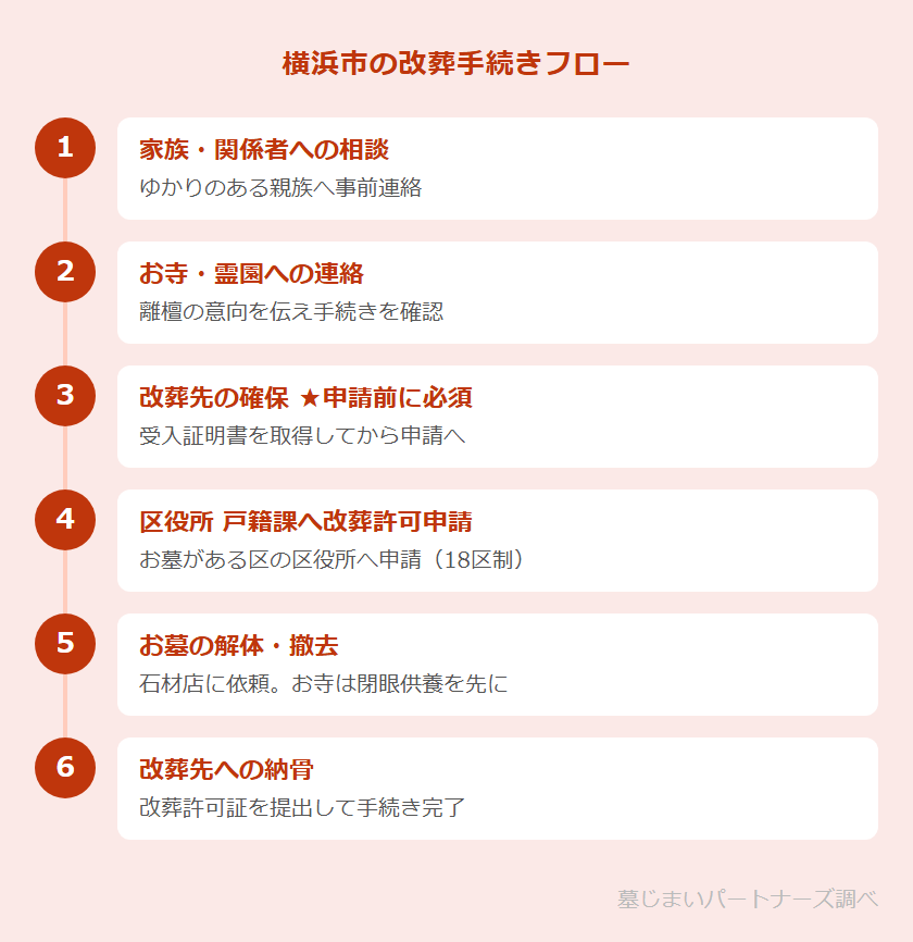 詳細・申請書のダウンロードは横浜市公式サイト(改葬許可申請)からご確認ください。