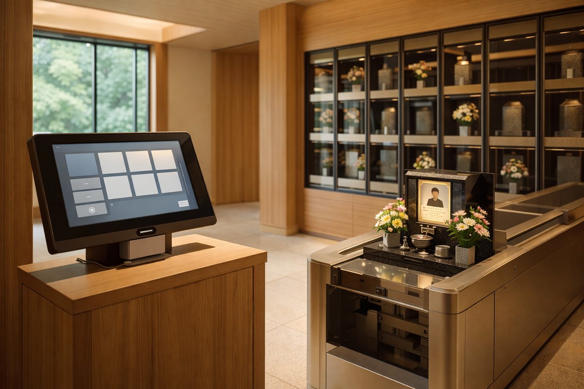 自動搬送型は、参拝ブースにカードをかざすと自動的に遺骨が運ばれてくるタイプです。プライバシーが守られた個室でお参りできます。近代的な設備が特徴です。